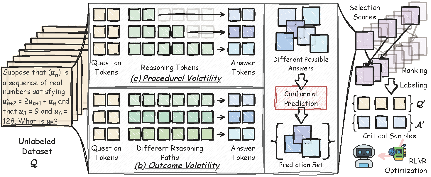 可验证奖励的强化学习RLVR 虽能显著增强大模型推理能力,但全量标注与均匀计算分配导致了高昂的资源开销。为此,本文提出“样本彩票假说”,即极少量关键子集即可匹敌全量训练效果,并据此设计了无监督框架 CONST。该框架无需真实标签,即可从原始数据中精准挖掘出这些高价值的“彩票样本”。